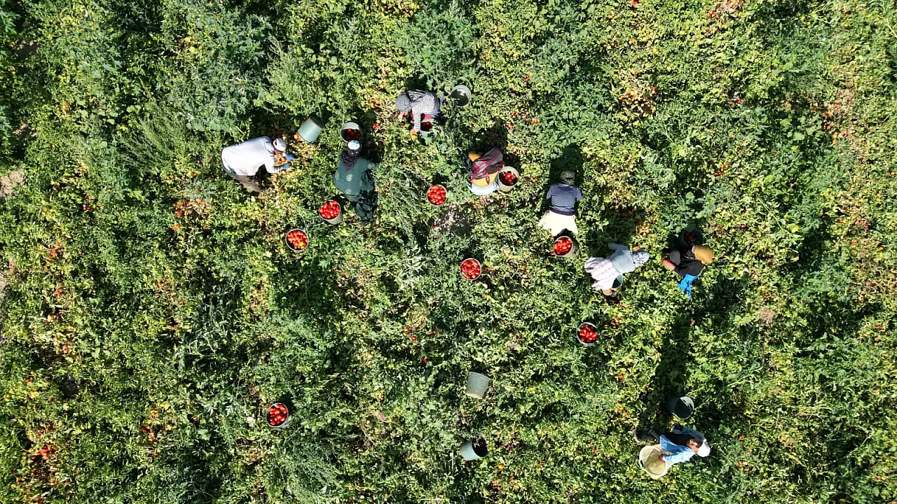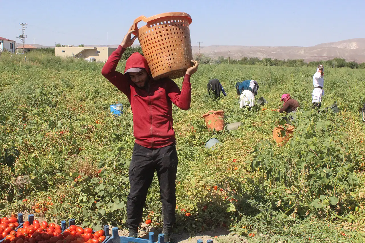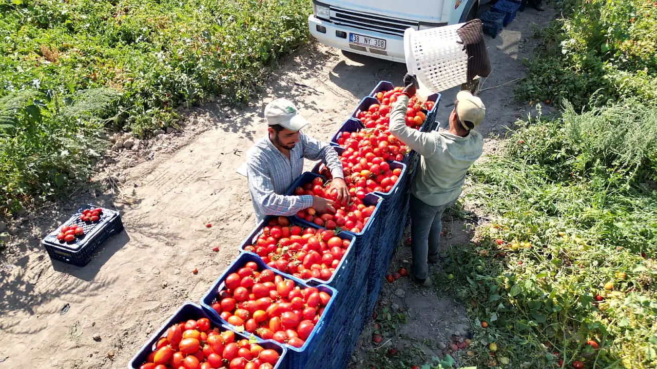 Kayseri’nin Yeşilhisar ilçesinde salça yapmak için yetiştirilen domateslerin hasadı başladı. Üreticilerden 4 çocuk babası Abdurrahman Bayram (46), “Bu sene, diğer yıllara göre kuraklıktan dolayı rekoltede düşüş yaşadık. Domatesin kilosunu tarlada 7-8 liraya satıyoruz” dedi.