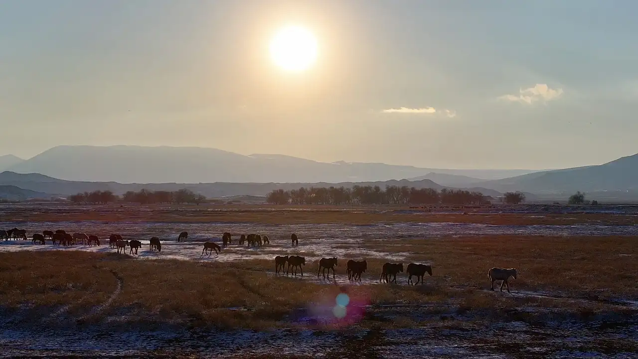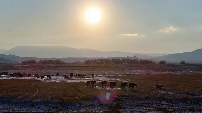 Türkiye'nin dört bir yanından fotoğraf tutkunlarının ziyaret ettiği Erciyes Dağı’nın eteğinde göçmen kuşlara ev sahipliği yapan Hürmetçi Sazlığı'ndaki yılkı atları dronla görüntülendi.