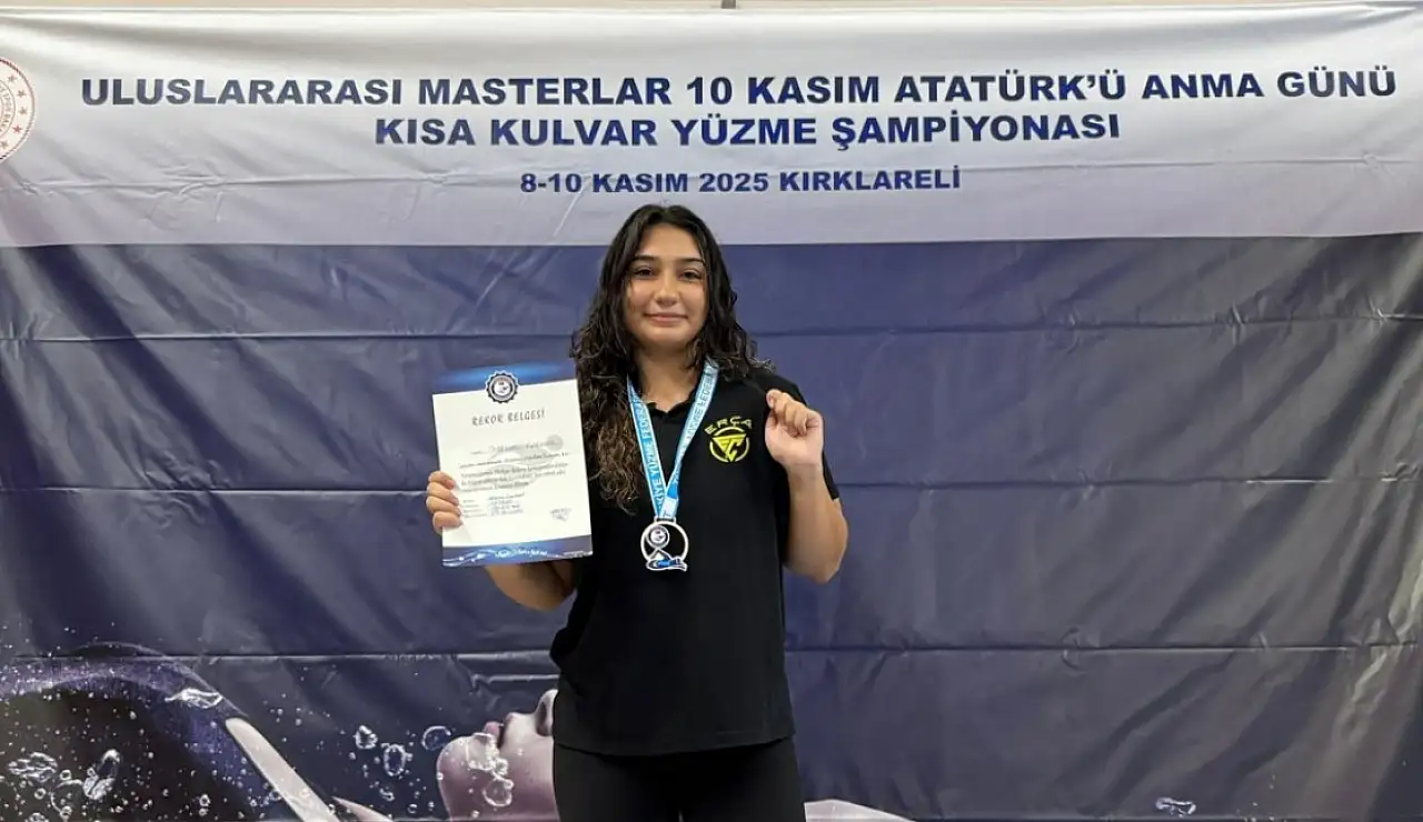 Kayserili sporcu Sudenas Çakmak, Kırıkkale’de düzenlenen Uluslararası Masterlar 10 Kasım Atatürk’ü Anma Kısa Kulvar Yüzme Şampiyonası’nda 3 kez Türkiye rekoru, 2 kez Türkiye Şampiyonu olarak büyük başarı elde etti.