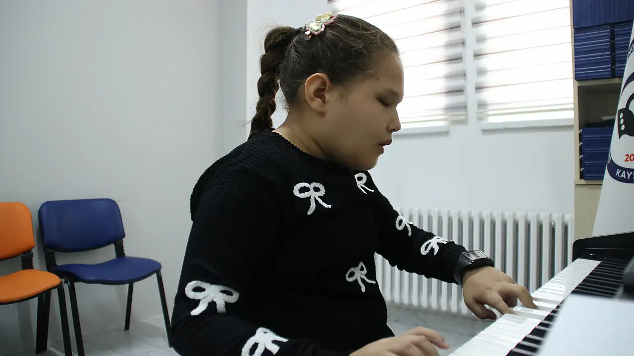 Kayseri'de 12 yaşındaki yüzde 90 görme engelli Hira Nur Bayazit, Wolfgang Amadeus Mozart gibi dehalarda bulunan 'Absolut kulak'a sahip.
