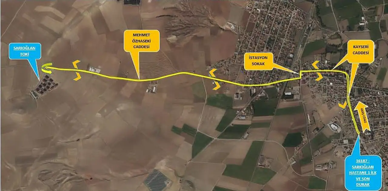 Kayseri’nin kırsal ilçelerinden olan Sarıoğlan’da hizmet vermesi planlanan hat ile TOKİ bölgesine ulaşım sağlanacak. 758 kodlu hat ile sağlanacak ulaşımda güzergah Kayseri Caddesi, İstasyon Sokak ve Mehmet Özhaseki Caddesi olarak açıklandı.