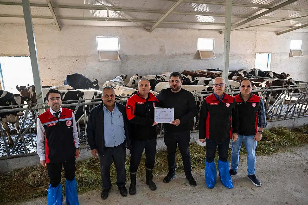 Yerköy Mahallesi’nde bulunan işletmeciye Hastalıktan Ari İşletme Belgesi ve rozeti takdim edilirken İl Müdürü Bülent Saklav yeni destekleme modeli ve üretim planlaması hakkında bilgilendirmelerde bulundu.