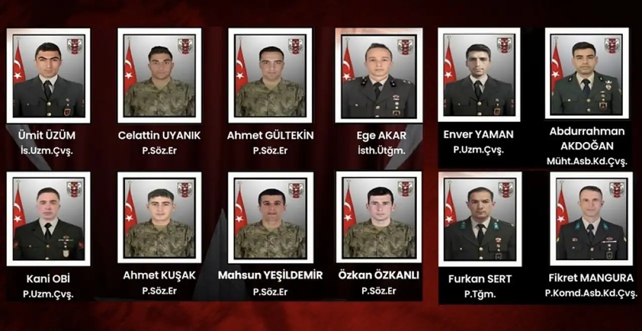 Şehit olan kahraman silah arkadaşlarımıza bir kez daha Allah’tan rahmet; kederli ailelerine, Türk Silahlı Kuvvetleri ile asil milletimize başsağlığı ve sabır; tedavileri devam eden personelimize acil şifalar diliyoruz.”