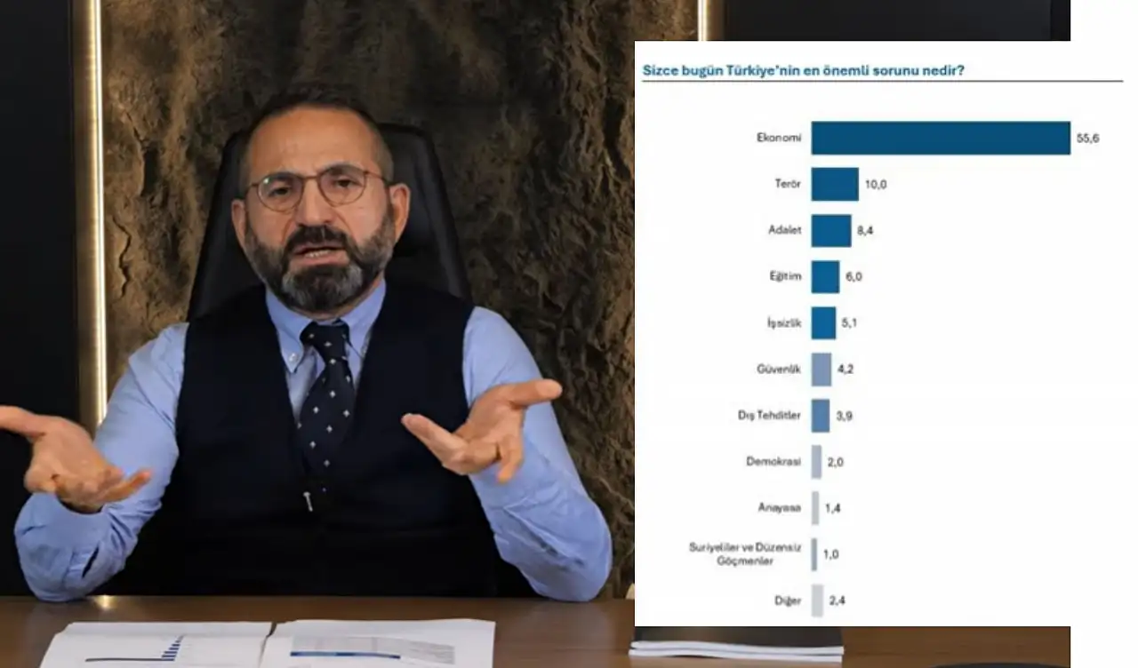 Vatandaşlara yöneltilen "Sizce bugün Türkiye'nin en önemli sorunu nedir?" sorusuna verilen cevaplarda Ekonomi %55,6 ile açık ara ilk sırada yer alıyor.