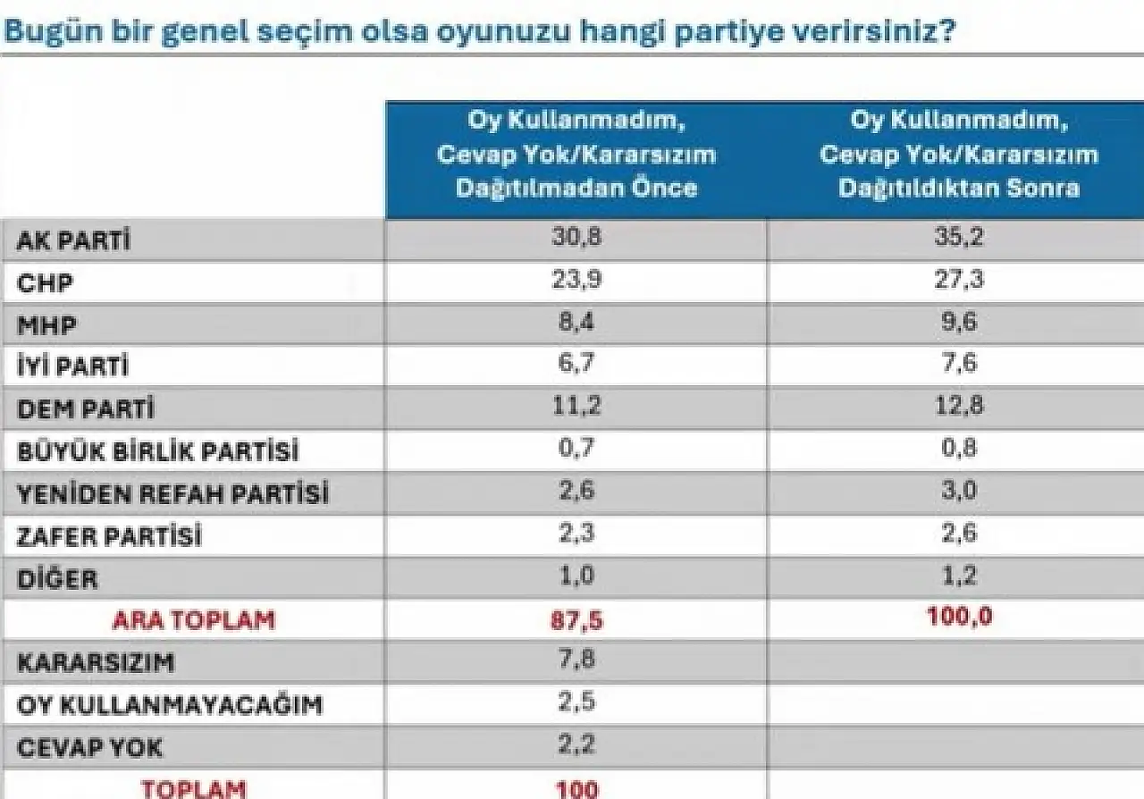 Siyasette son durum: Kararsızlar dağıtılınca tablo netleşti