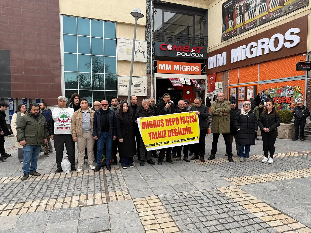 İş bırakan depo işçilerine Kayseri’den de destek geldi. Kayseri’de bulunan bir Migros şubesinin önünde Migros İşçileriyle Dayanışma Komitesi, ‘Migros Depo İşçisi Yalnız Değildir’ konulu basın açıklaması yaptı. Açıklamaya Cumhuriyet Halk Partisi (CHP) Kayseri'den de destek verdi. Melikgazi İlçe Başkanı Turan Arık, Gençlik Kolları İl Başkanı Efecan Çakmak ve il başkan yardımcılarının katıldığı açıklamanın ardından CHP Kayseri İl Başkanlığı bir paylaşım yaptı. Paylaşımda, “İşçimiz de çiftçimiz de emeklimiz de hakkını alana kadar mücadelemizi sürdüreceğiz! Ne ezen ne ezilen insanca bir düzeni kuracağız!” ifadelerine yer verdi.