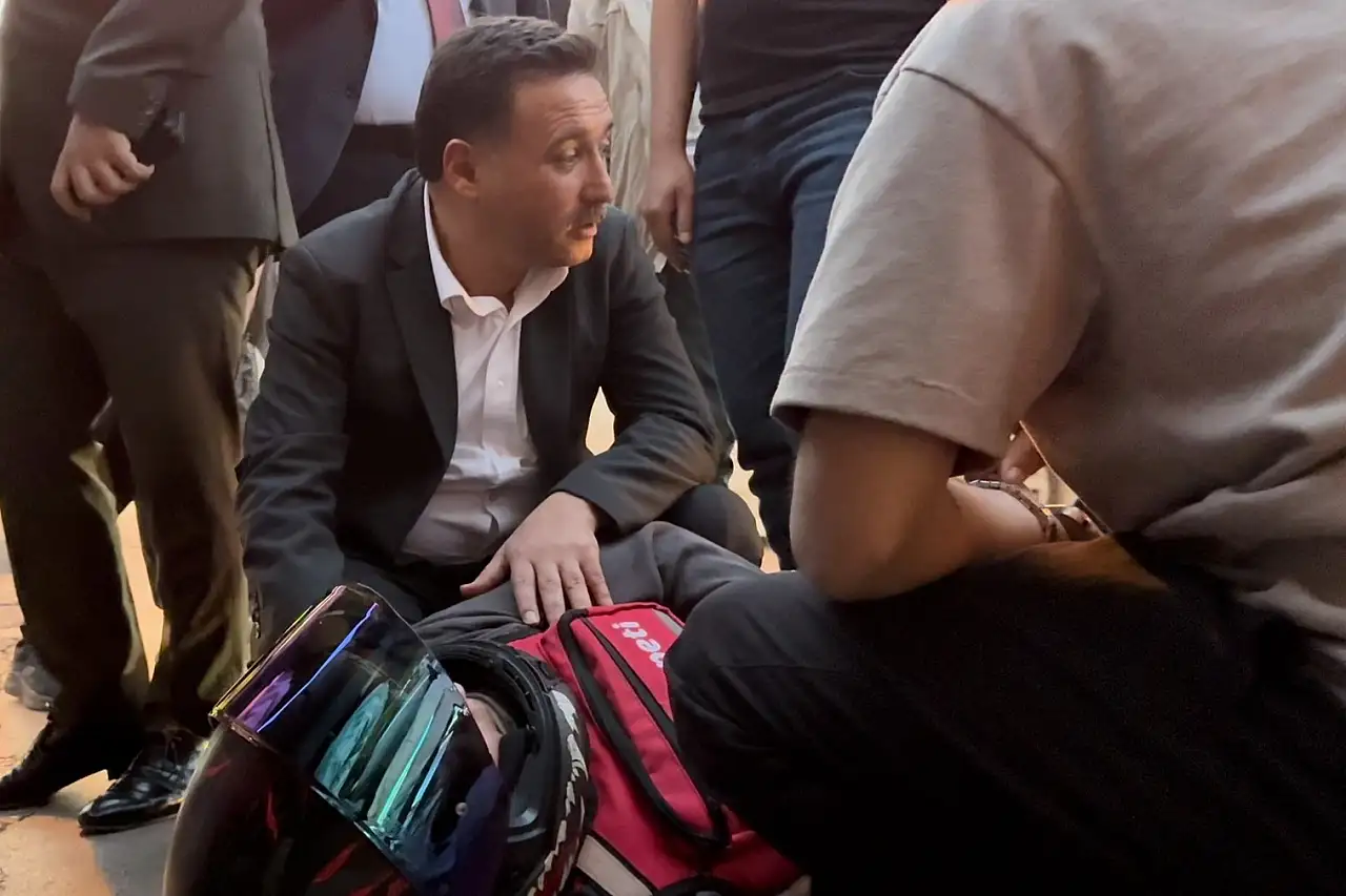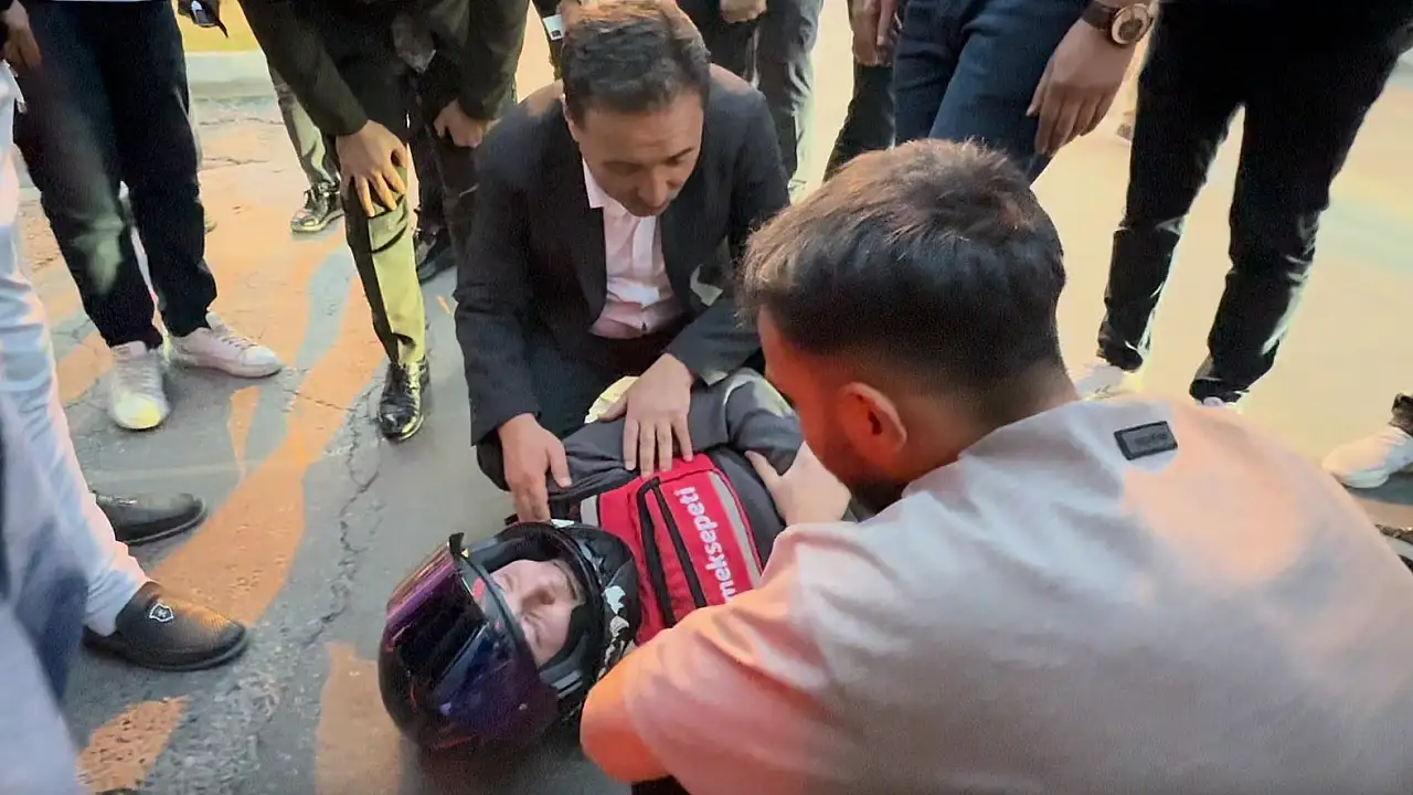 Motorlu kuryenin karıştığı kazada Vali Çiçek yerde yatan yaralı genç kuryeyle ilgilendi ve 112 Acil Servis ve güvenlik ekiplerinin müdahale çalışmalarını bizzat takip etti.
