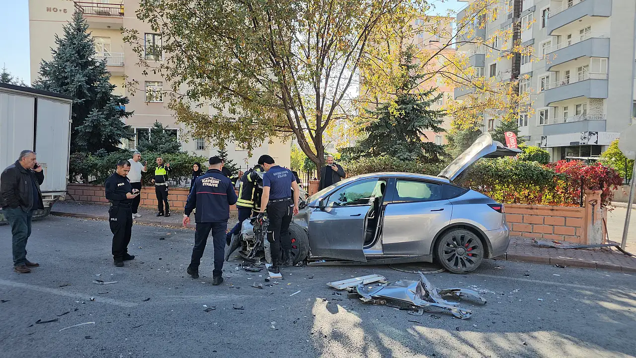 Edinilen bilgiye göre, Barbaros Mahallesi Oymak Caddesi’nde N.E. adlı sürücü, 38 ABT 038 plakalı Tesla marka otomobilinin hızını denemek için kırmızı ışıkta gaza baştı. Bir süre sonra direksiyon hakimiyetini kaybeden N.E. önce bir apartmanın duvarına, daha sonra park halindeki 42 ANA 669 plakalı kamyonete çarptı.