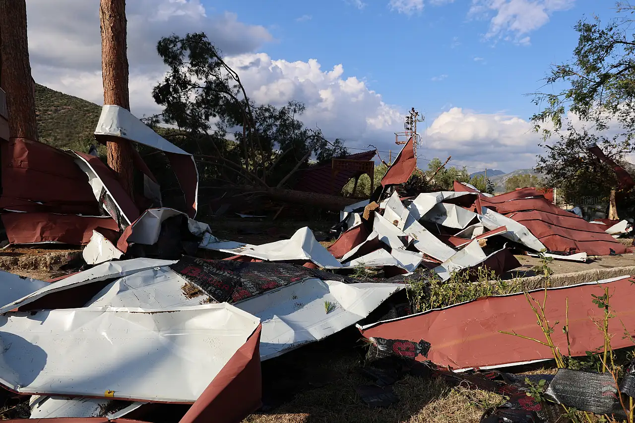 Hortumun etkili olduğu bölgede Ali Yalım’a ait bir ahırın da yıkıldığı, bazı evlerin mutfak camlarının kırıldığı öğrenildi. Ekipler, bölgede hasar tespit çalışmalarını sürdürürken son durum havadan görüntülendi.