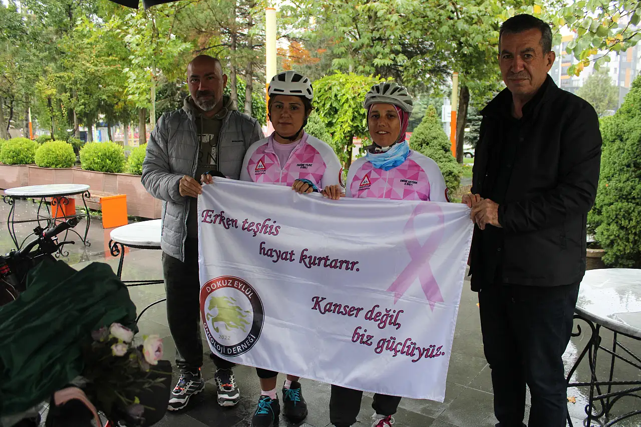 İzmir’de yaşayan Emine Aktürk ile Aydın’da yaşayan Fadime Yıldız; yıllardır gördükleri kanser tedavisinin ardından hastalığı yenerek sağlıklarına kavuştu. Meme Kanseri Farkındalık Ayı dolayısıyla bisikletleriyle Konya’dan hareket eden Aktürk ve Aydın; Kayseri’ye geldi.