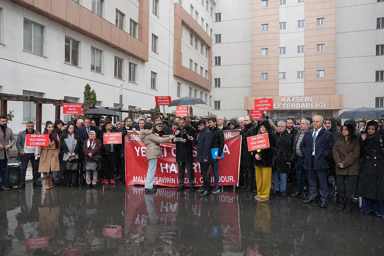 Kayseri Defterdarlığı önünde yapılan açıklamaya, çok sayıda meslek mensubu katıldı. Burada konuşan Başkan Uslular, 586 No’lu Tebliğ ile meslek odalarına defter tutma ve beyanname gönderme yetkisi verilmesinin 3568 sayılı Kanun’a açıkça aykırı olduğunu vurgulayarak; "Beyanname imzalama yetkisi yalnızca mali müşavirlere aittir. Bu yetki devredilemez, paylaşılamaz. Mali müşavirin imzası mesleğin onurudur" ifadelerini kullandı. Düzenlemenin vergide eşitlik ve adalet ilkesini zedelediğini belirten Uslular, bu uygulamanın kayıt dışılığı artıracağını, vergiye gönüllü uyumu azaltacağını ve kamu gelirlerini olumsuz etkileyeceğini kaydetti. Uslular; "Vergi sisteminin yükünü omuzlayan mali müşavirler devre dışı bırakılarak, kamu yararı değil, yeni sorun alanları oluşturulmaktadır. Yanlış beyanın, sahte belgenin ve cezai yaptırımların muhatabı yine mali müşavirler olacaktır. Yetkiyi verenler bu sorumluluğu da üstlenmelidir. Yetki gaspına karşı susmayacağız. Mesleğimizi, imzamızı ve kamu yararını savunmaya devam edeceğiz" dedi.