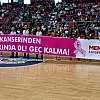 Melikgazi Kayseri Basketbol-Botaş maçında oyuncular parkeye pembe pankartla çıktı.