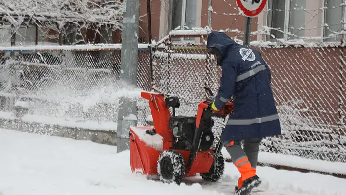 Melikgazi Belediyesi ekipleri, 58 mahallede kar küreme, temizleme ve tuzlama çalışması gerçekleştiriyor.