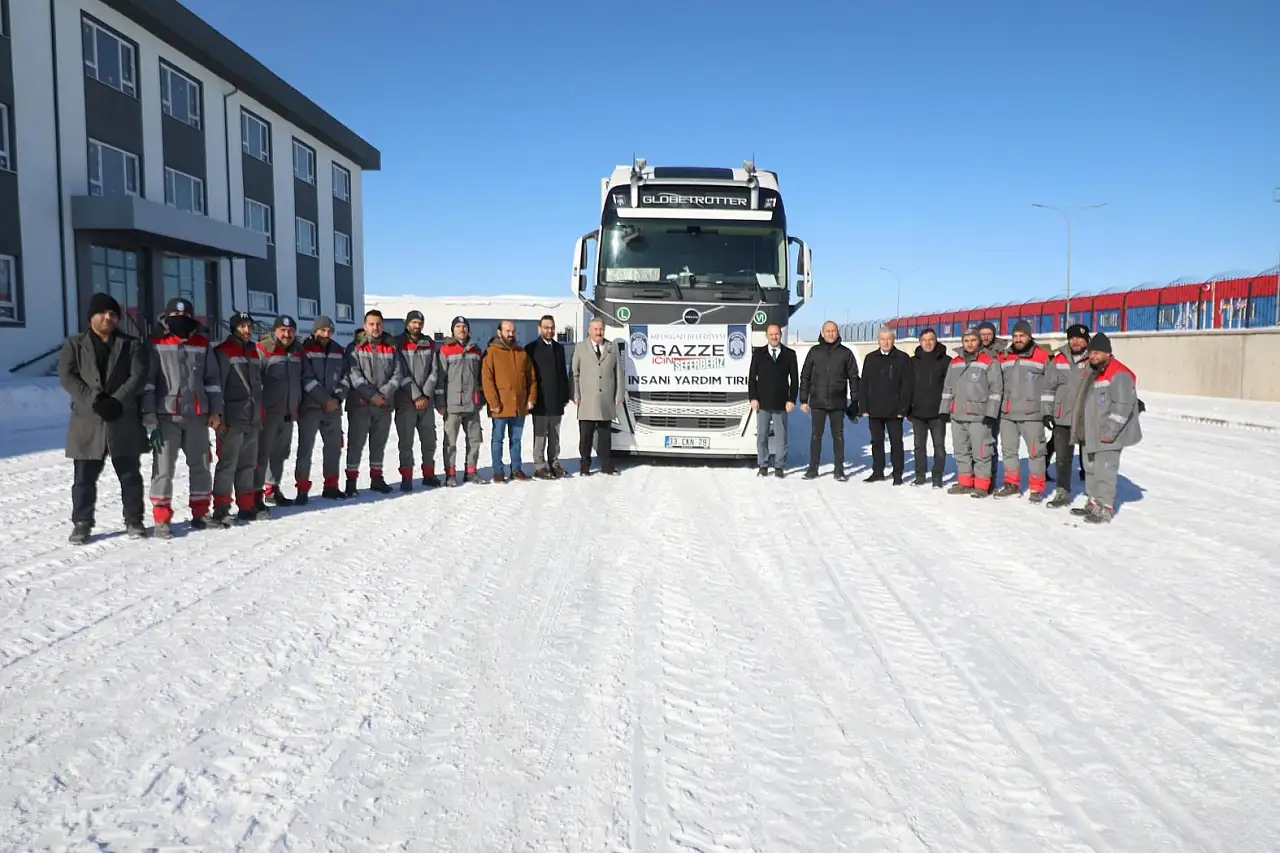 Melikgazi Belediyesi tarafından, yaraları sarmak için Gazze'ye gönderilmek üzere hazırlanan insani yardım tırı, Mimarsinan OSB'den dualarla yola çıktı.