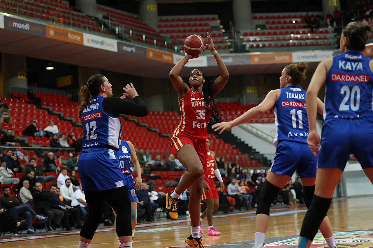 Halkbank Kadınlar Basketbol Süper Ligi 12. haftasında Melikgazi Kayseri Basketbol, sahasında ağırladığı Çanakkale Belediyespor’u 91-72’lik skorla mağlup etti. Sarı-kırmızılı takımda en skorer isim 17 sayı ile İdil Türk oldu.