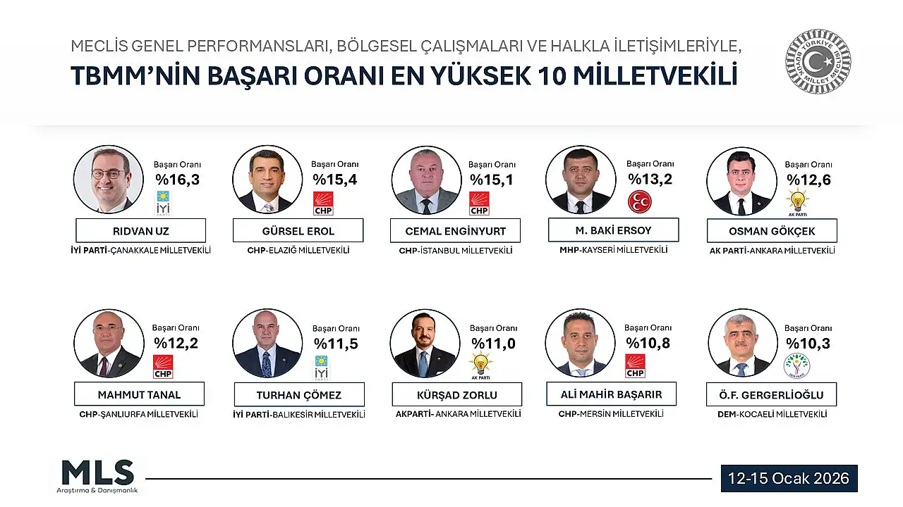 MLS Araştırma 12-15 Ocak 2026 tarihinde 26 ilde 2430 katılımcı ile Türkiye genelinde milletvekillerinin başarı oranı üzerine bir anket gerçekleştirdi. İYİ Parti Çanakkale Milletvekili Rıdvan Uz’un yüzde 16,3 ile listenin başında yer aldığı Baki Ersoy’un başarı oranı yüzde 13,2 olarak açıklandı. Ersoy bu oranla listenin dördüncü sırasında yer aldı.