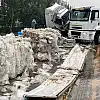 Naylon atık yüklü tır kontrolden çıkarak bariyerlere çarptı.