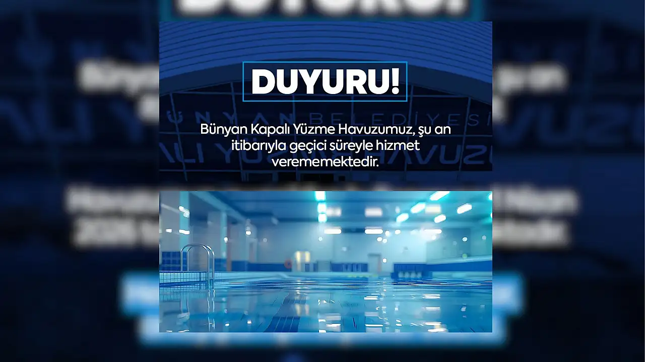 Bünyan Belediye Başkanı Selahattin Metin, konuyla ilgili yaptığı açıklamada şunları kaydetti: "Bünyan Kapalı Yüzme Havuzumuz, şu an itibarıyla geçici süreyle hizmet verememektedir. Havuzumuzun yeniden kullanımına 1 Nisan 2026 tarihinde açılması planlanmaktadır. Hemşehrilerimizin bilgisine sunar, anlayışları için teşekkür ederiz."