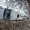 Öğrencileri taşıyan okul servisi yan yattı. Araç içerisindeki 14'ü öğrenci 15 kişi yaralandı.