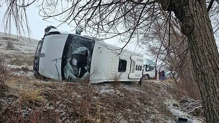 Sivas’ta öğrencileri taşıyan okul servisi yan yattı. Araç içerisindeki 14’ü öğrenci 15 kişi yaralandı.
