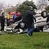 Meydana gelen trafik kazasında otomobilin takla attı.