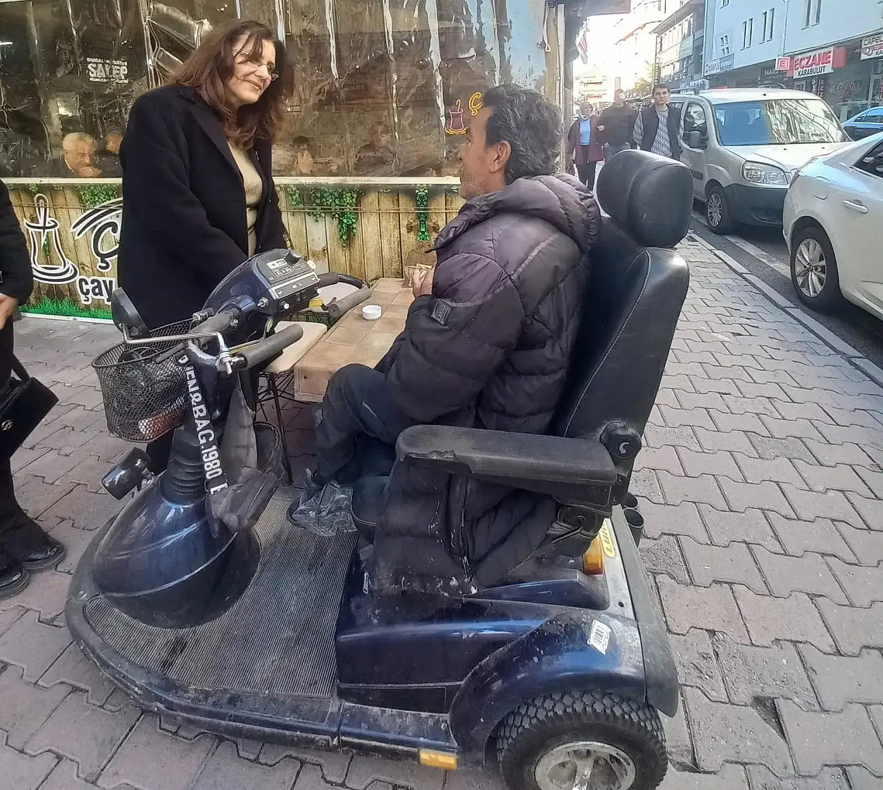 'Halkın iktidarında hayata geçireceğimiz uygulamalarla her kesimin sorunlarına çözüm getireceğiz' diyen Özer, ‘Engelli vatandaşlarımızın hayatını kolaylaştıracak, önlerindeki engelleri sözde değil, özde de kaldıracak adımların atılmasına acil ihtiyaç var. Biz sık sık engelli kardeşlerimizle bir araya geliyor, onların sorunlarını dinliyoruz. Örneğin #Kayseri’de Engelli kardeşlerimizin toplu taşımaya yönelik talepleri var. Tramvaylarda olduğu gibi otobüslerde de sesli uyarı sistemlerinin olmasını istiyorlar. Bunun yanında işverenlerden engelli kotasına uymaları yönünde de talepleri var. Bizler, bu anlamda her zaman onların yanındayız. Engellerin kaldırılması ve onların hayatın her alanında var olmaları için destek olmaya devam edeceğiz. Belirtmek isteriz ki Halkın iktidarında onların eğitim, iş, sağlık gibi alanlarda hakları olan tüm imkanlara ulaşmaları için gerekli adımları atacağız.’ diye konuştu.