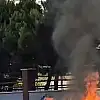 Park halindeki araç alev alev yandı.