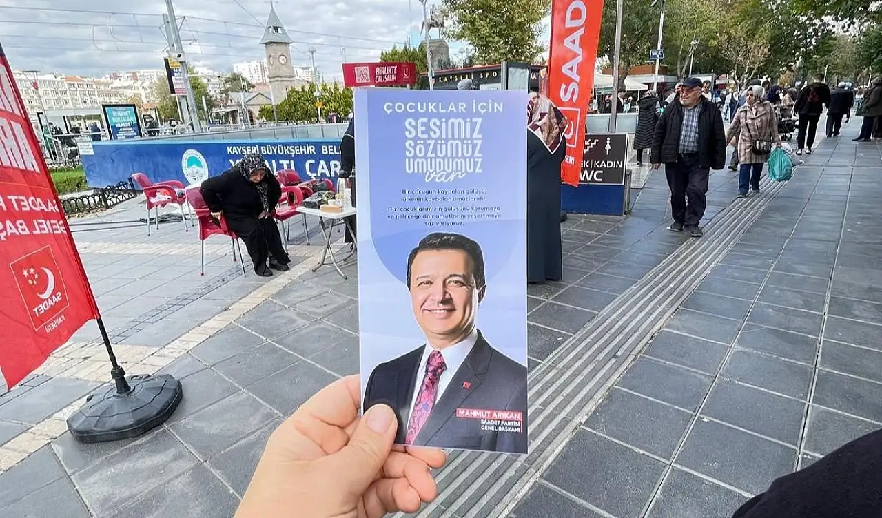 Kayseri Cumhuriyet Meydanı'nda Saadet Partisi Kadın Kolları tarafından etkinlik gerçekleştirildi. Yapılan etkinlikte vatandaşlara broşür dağıtılırken, çocukların yaşadıkları sıkıntılar hakkında açıklama yapıldı. Eğitimde fırsat eşitliğinin sağlanması ve çocuk yoksulluğunun ortadan kaldırılması gerektiği belirtilirken, güvenli bir ortamda büyümenin önemi de belirtildi.