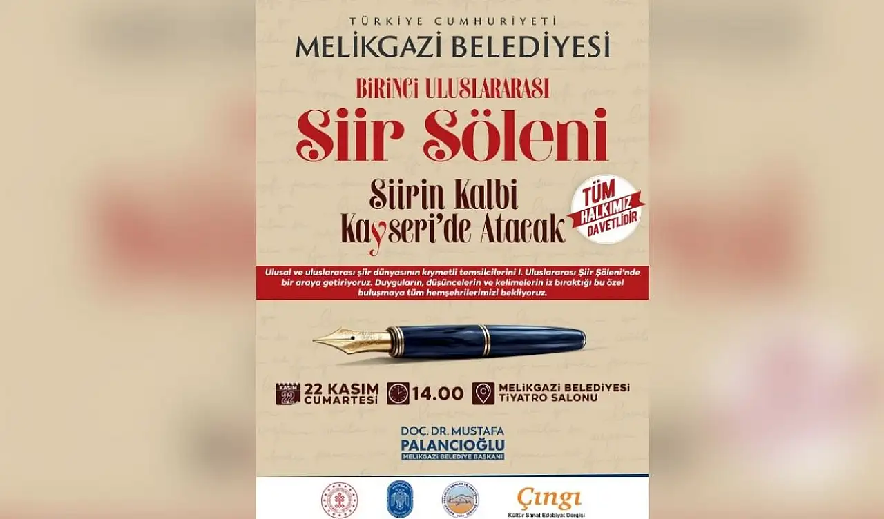 Kayseri, önemli bir kültürel ve sanatsal etkinliğe imza atacak. Melikgazi Belediyesi, ulusal ve uluslararası şiir dünyasının temsilcilerinin bir araya geldiği 1. Uluslararası Şiir Şöleni düzenleyecek. Detaylar haberimizde.