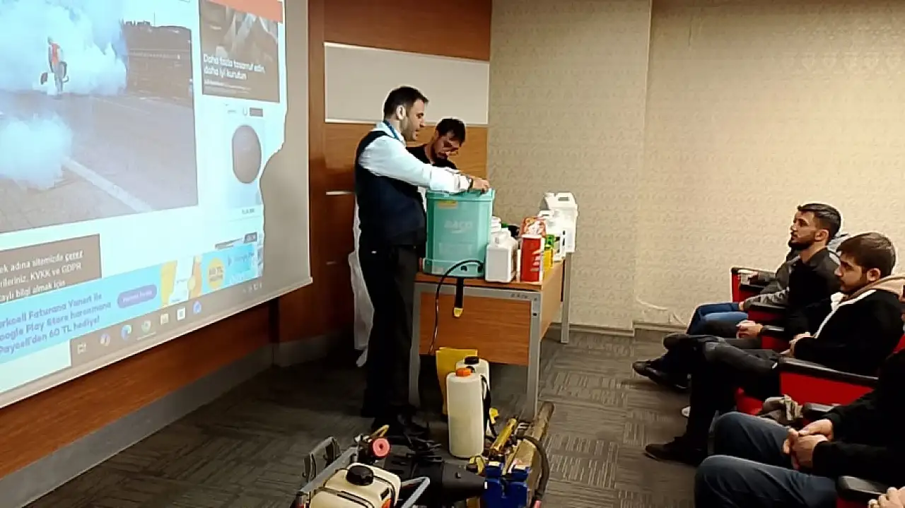 Talas Belediyesi Veteriner İşleri, İl Sağlık Müdürlüğü koordinasyonunda çevreye duyarlı ve bilinçli uygulamaların yaygınlaştırılması ve kamu kurumlarında görevli personelin yetkinliklerinin artırılması kapsamında Adalet Bakanlığı personeli ve çeşitli resmi kurum çalışanlarına yönelik Biyosidal Ürün Uygulama Sertifika Eğitimi verdi.