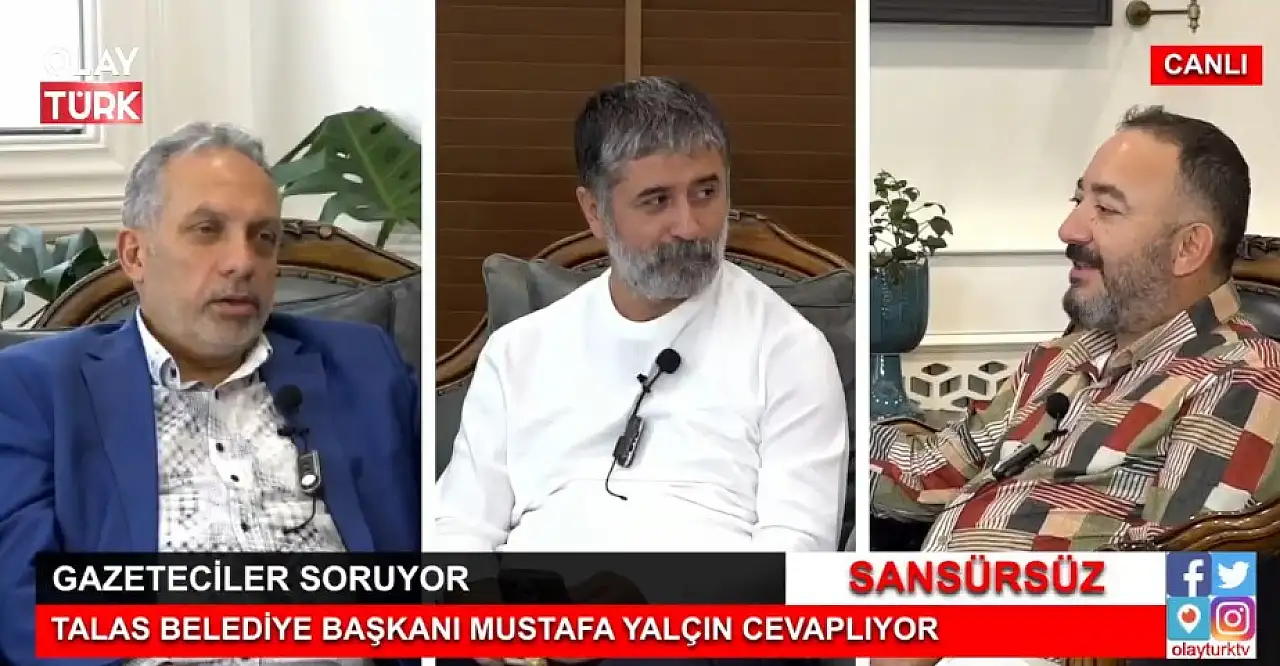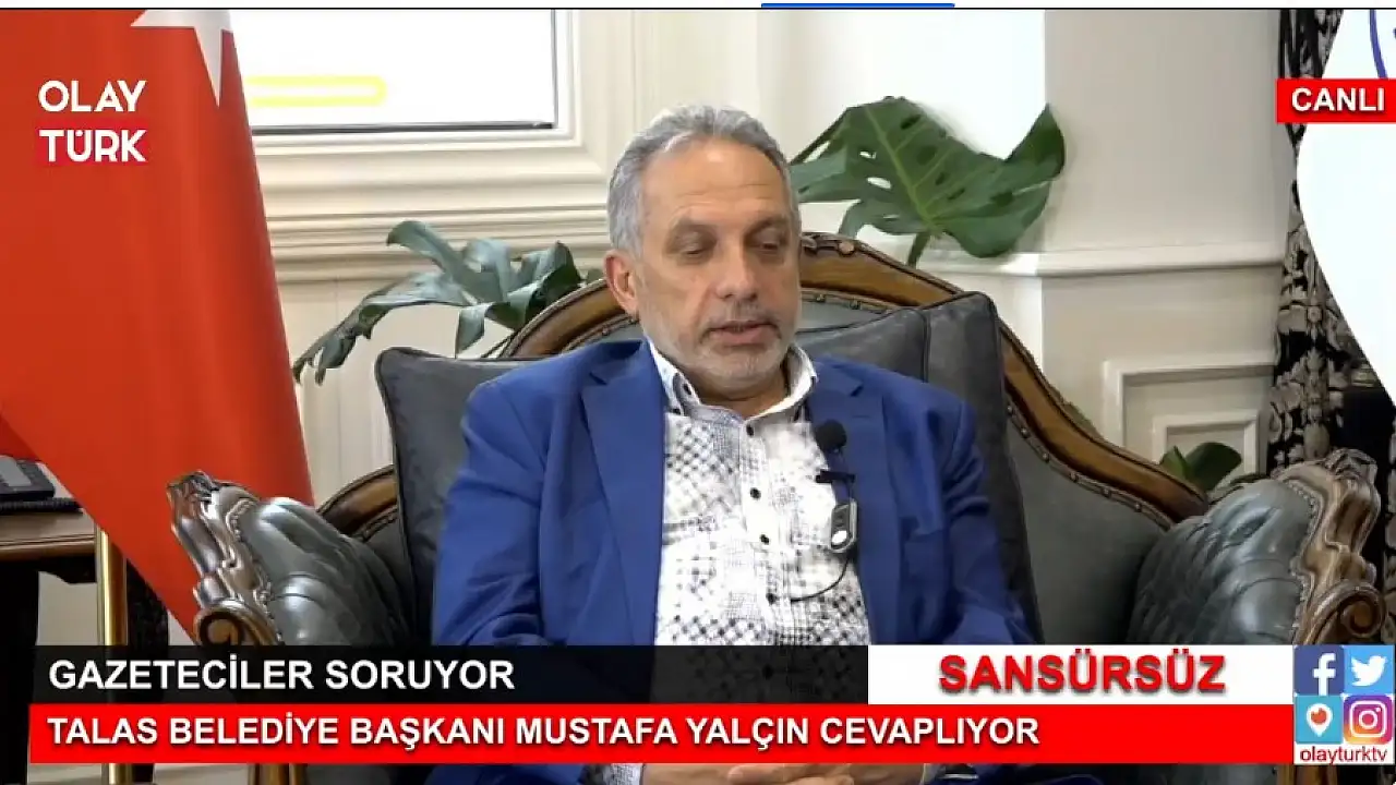 Talas Belediye Başkanı Mustafa Yalçın, Kayseri OlayTürk ekranlarında yayınlanan Sansürsüz programının bu haftaki konuğu idi. Gazeteci Osman Çİftçi ile Cem Atakan'ın sorularını yanıtlayan Başkan Yalçın belediye olarak para durumlarının iyi olduğunu söyleyerek kentsel dönüşüm konusunda "Depremin en önemli hazırlığı kentsel dönüşümdür" dedi.