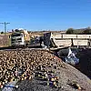 Nevşehir’de patates yüklü bir TIR'ın devrilmesi sonucu tonlarca patates karayoluna döküldü. Kaza nedeniyle yol bir süre çift yönlü trafiğe kapandı.