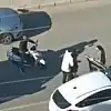 Adana'da trafikte yol verme meselesi sebebiyle çıkan kavga, cep telefonu kamerasıyla saniye saniye görüntülendi.