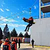 Adana'da senaryo gereği uçurumdan sarkmış bir araçta da kurtarma gerçekleştirildi.