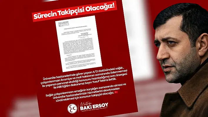 Milliyetçi Hareket Partisi (MHP) Kayseri Milletvekili Baki Ersoy, üniversite hastanelerinde görev yapan 4/D statüsündeki sağlık çalışanlarının ikramiye ve mali haklarında yaşanan gecikmeler ile personel eksikliğini TBMM gündemine taşıdı.