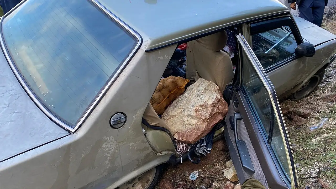 Kahramanmaraş’ta seyir halindeki bir araca yamaçtan kopan kaya parçası isabet etti. Kazada 2'si ağır, 4 kişi yaralandı.