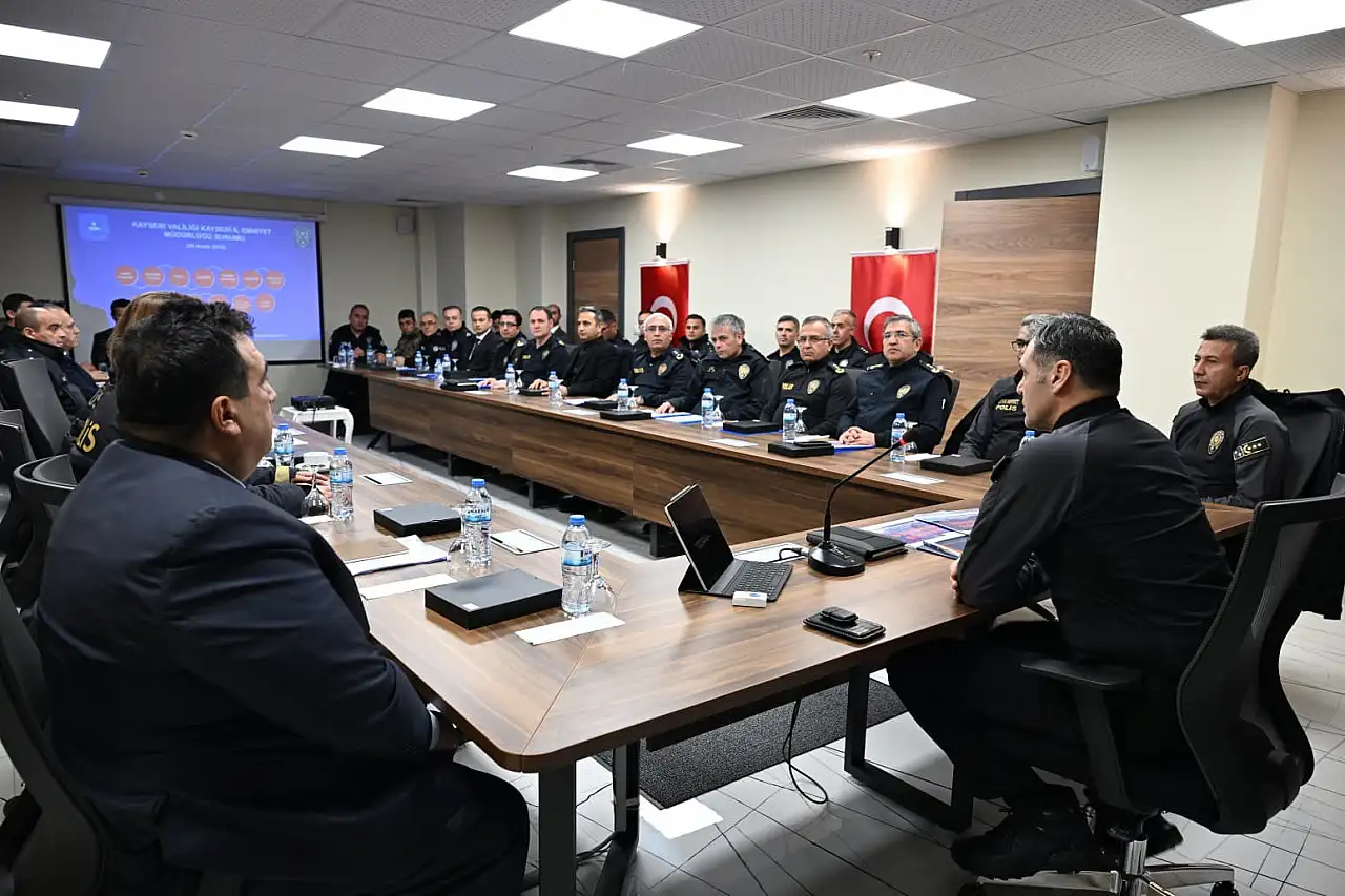 Kayseri Emniyet Müdürlüğü tarafından huzur ve güvenliği sağlamaya yönelik çalışmalar sürüyor. Kentte yılbaşı öncesi alınan tedbirler masaya yatırıldı.